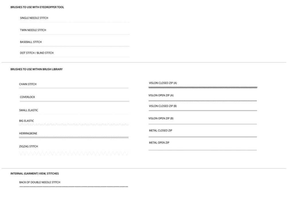 Downloadable file in Adobe Illustrator with brushes to use in technical sketches, for sketches used in-industry and tech packs.